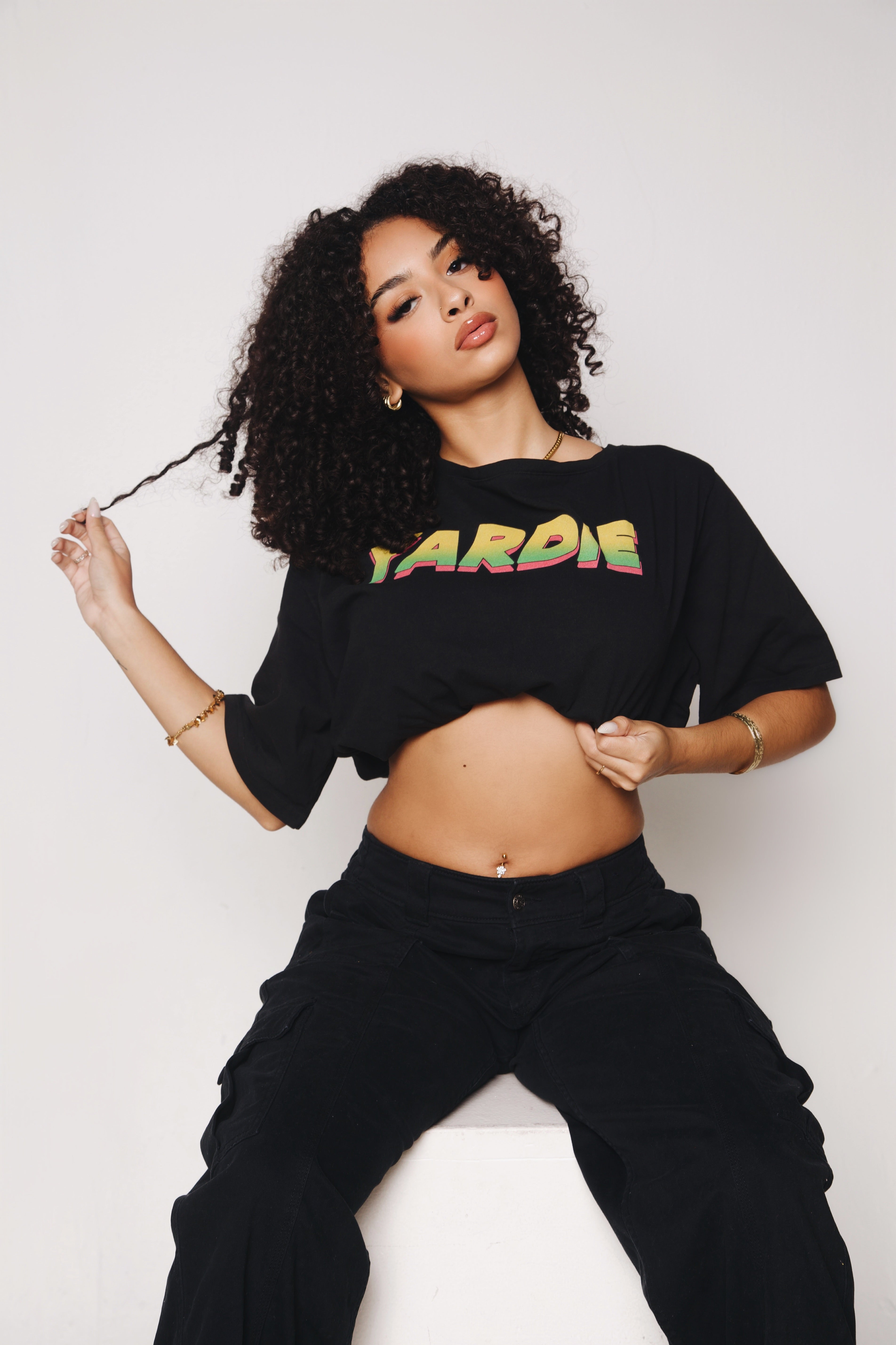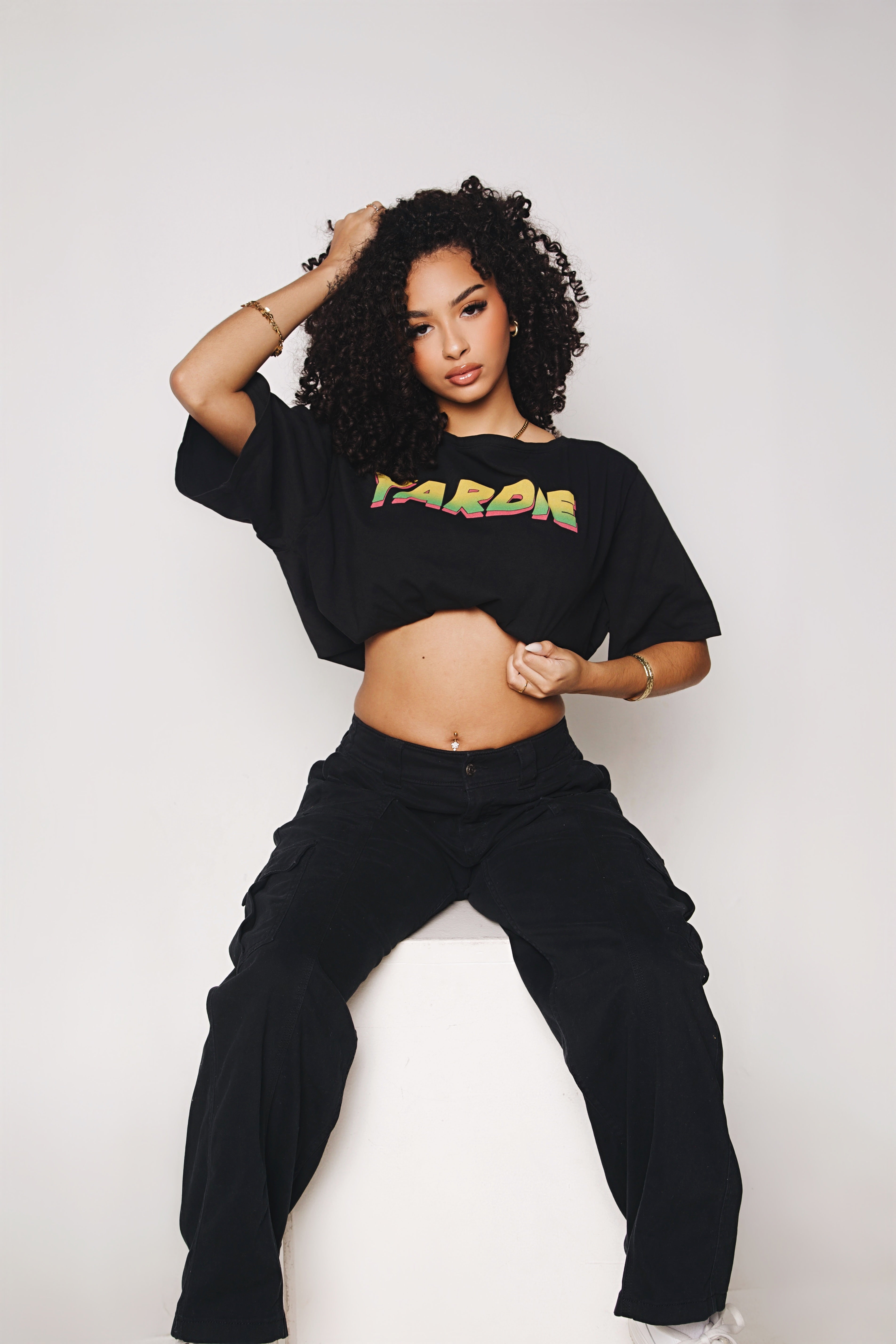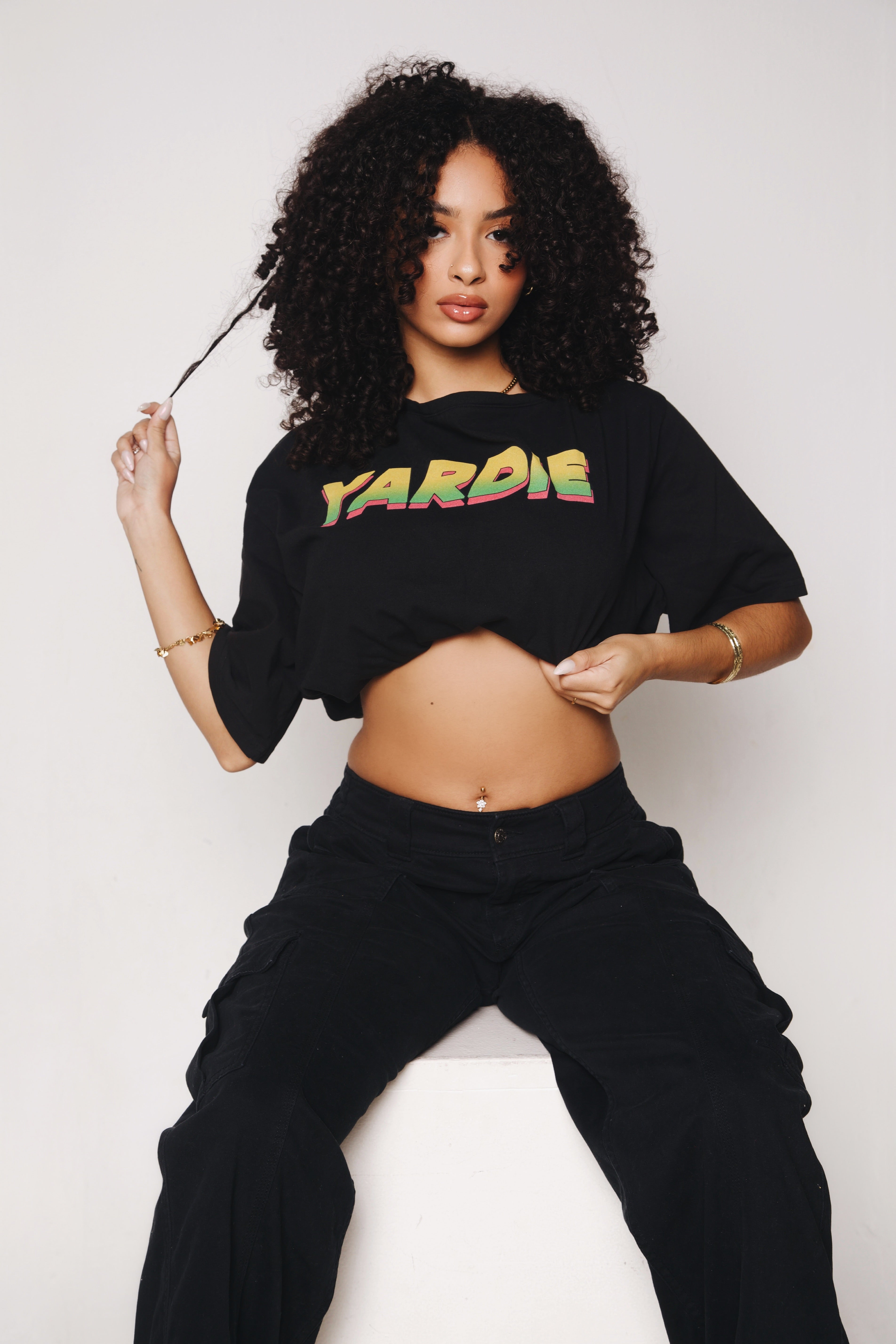 The Yardie Shoulder Oversized Cotton T-Shirt is made from 100% cotton (230 GSM) with a loose, lightweight fit. Designed with cold-shoulder cutouts, a scoop neck, and a cropped length for an easy, relaxed look. Ideal for spring and summer wear.